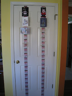 Do you remember our Christmas Card display from our Chicago Apartment? I found a perfect spot for this in our Kitchen on our Basement door. It was crazy to put the ribbon on this door and see how much shorter it is than our door in Chicago - our ceilings and doorways aren't quite as high as they were there!